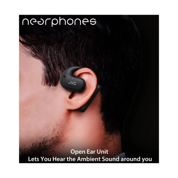 JVC nearphones Open Ear True Wireless Headphones with 16mm Large Drivers for Powerful Sound, Single Ear use, and Long Battery Life (up to 17 Hours) - HANP35T.