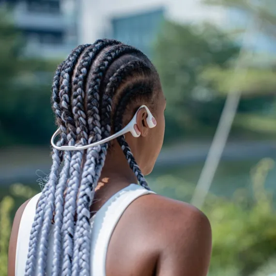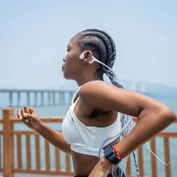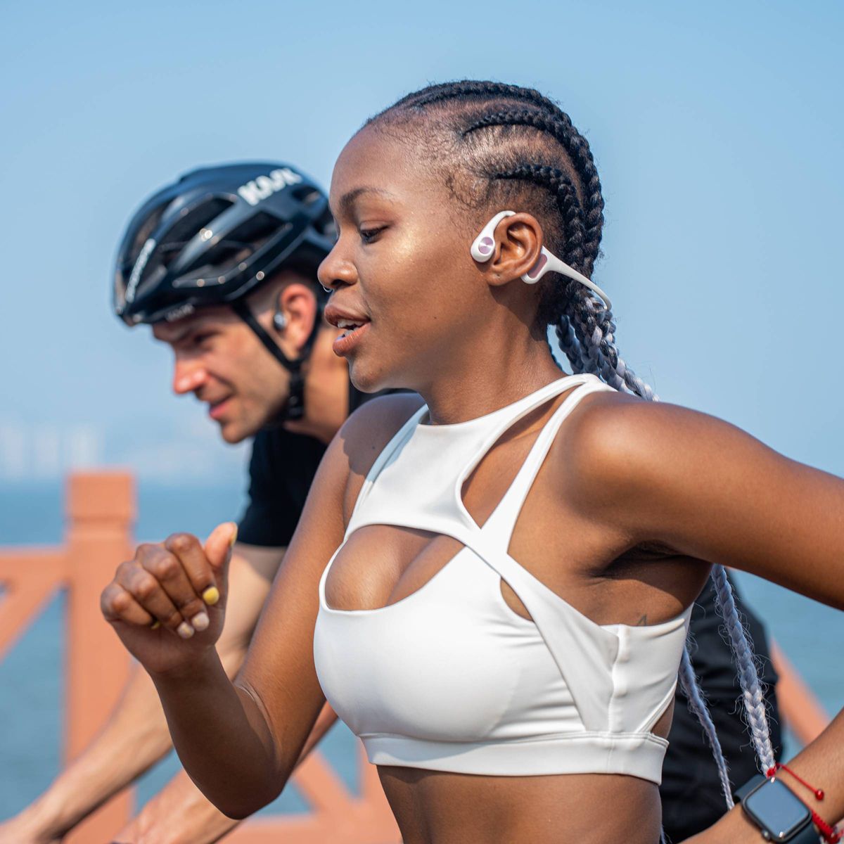 The Run Air/Mojo 2 bone-conduction headphones from Mojawa™ feature a unique open-ear design, ensuring comfortable and earbud-free listening while allowing you to be aware of your surroundings. Their titanium alloy build offers 360° rotation which moves as you move plus they use soft silicone for comfort, lightweight design, and maximum flexibility. The patented 3rd generation Maglev-Bass™ actuator provides added oscillators in the low-frequency range, bringing out the details of the bass with punching intensity for workout motivation. And their IP67 design provides complete protection against rain, dust, and sweat to keep up with your training regardless of the weather (not suitable for swimming).