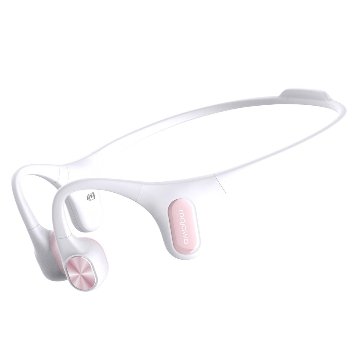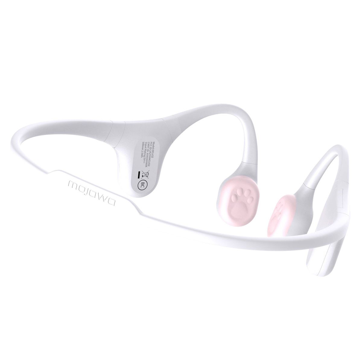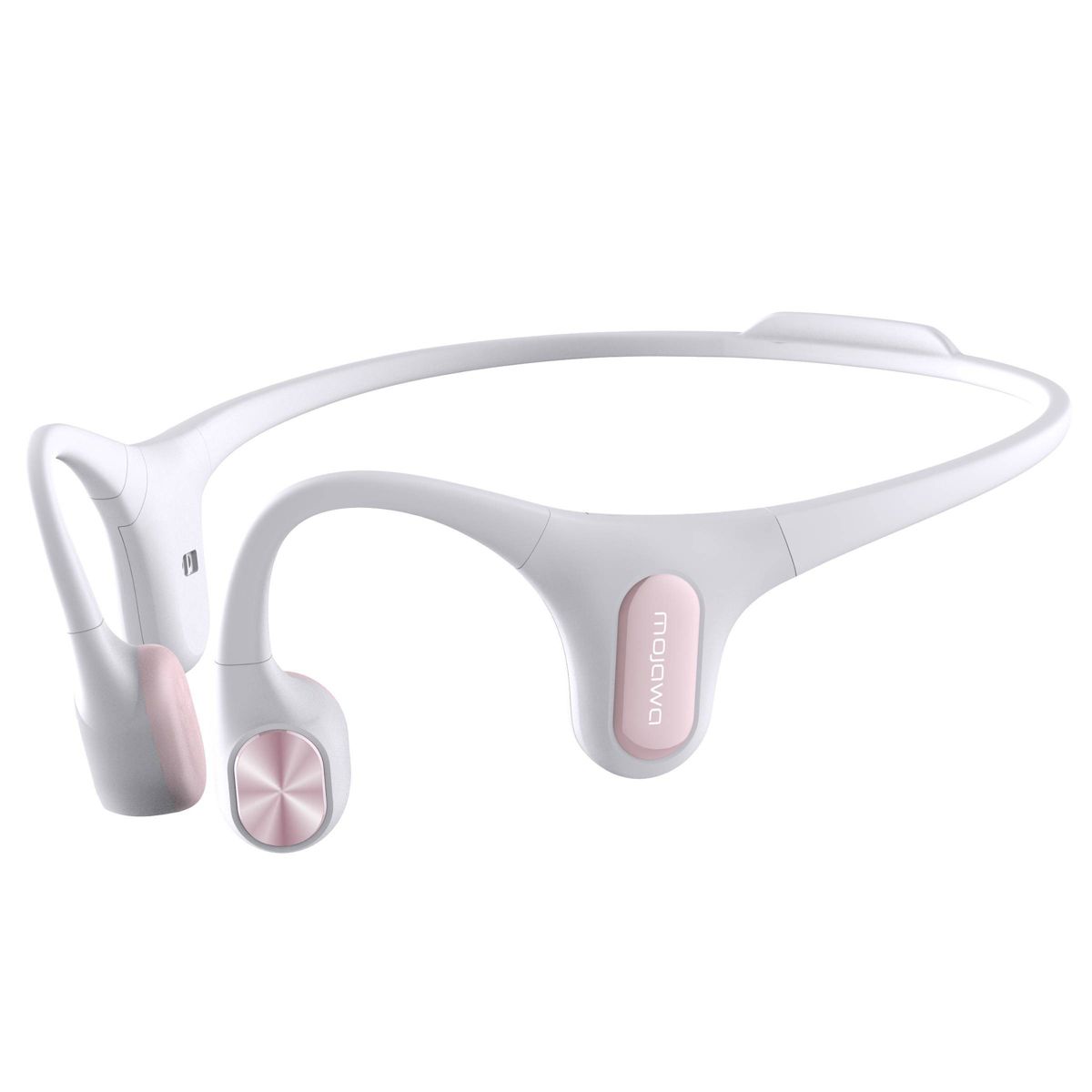 Mojawa Run Air/Mojo 2 Bluetooth Wireless Bone-Conduction Waterproof Open-Ear Headphones with Microphone - White: Lightweight Design, Volume Control