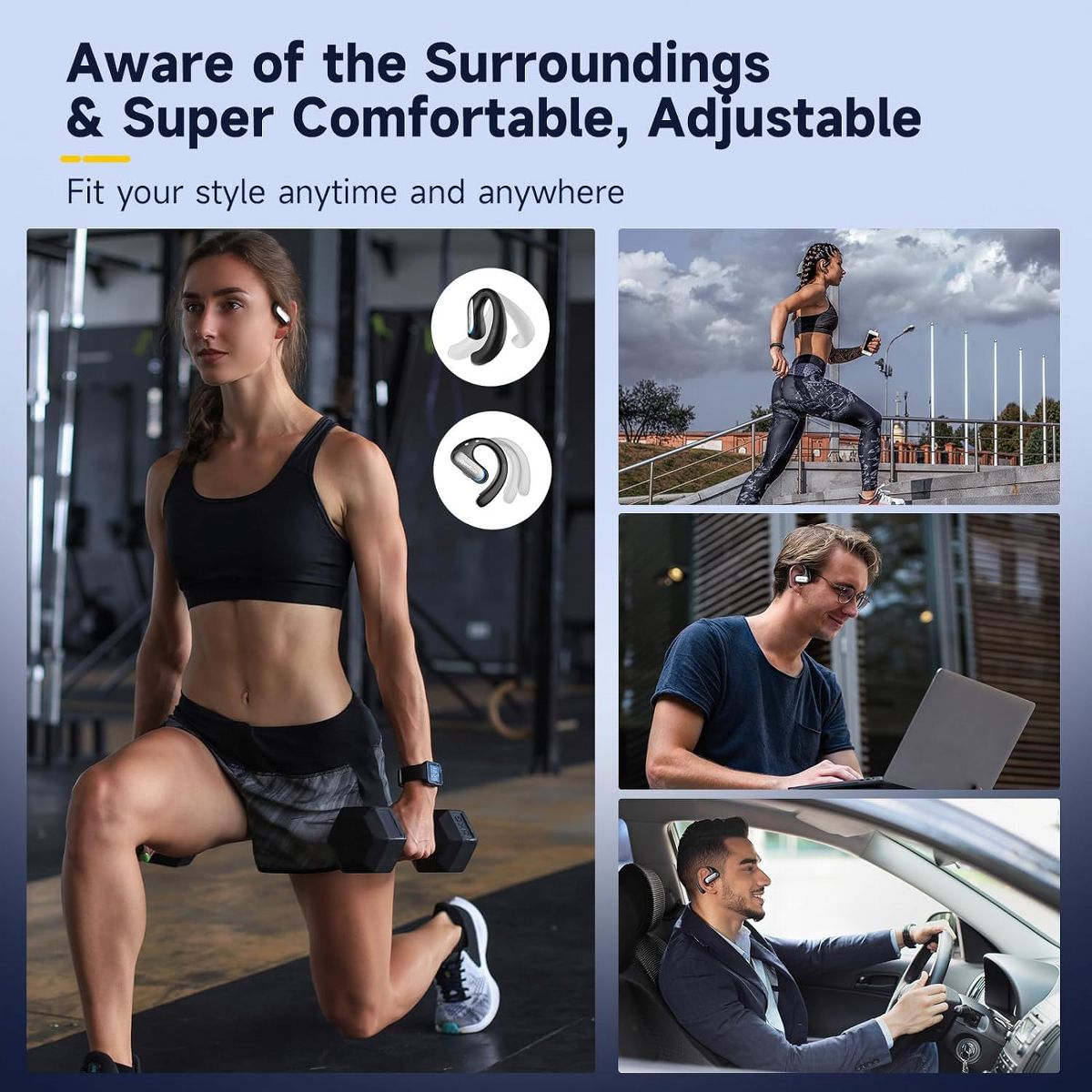 Sports and outdoor activity enthusiasts: Open-ear headphones have better breathability and sweat resistance, and can better adapt to outdoor sports such as running, cycling, and hiking. For music lovers who pursue natural sound quality and a wide sound field: OpenRock adopts a new generation of TubeBass bass enhancement technology to provide a feeling closer to live performance. People with small, sensitive ears and unhealthy ear canals: OpenRock is worn outside the ears through adjustable silicone ear hooks, which do not cause irritation or pressure on the ear canals, and can adapt to ears of different sizes. People who need to remain surrounding awareness: People who require listening alertness in the workplace and enjoy listening to audiobooks. People who need to wear headphones for long periods of time: Compared with in-ear earbuds, open-ear reduces ear pressure and discomfort.