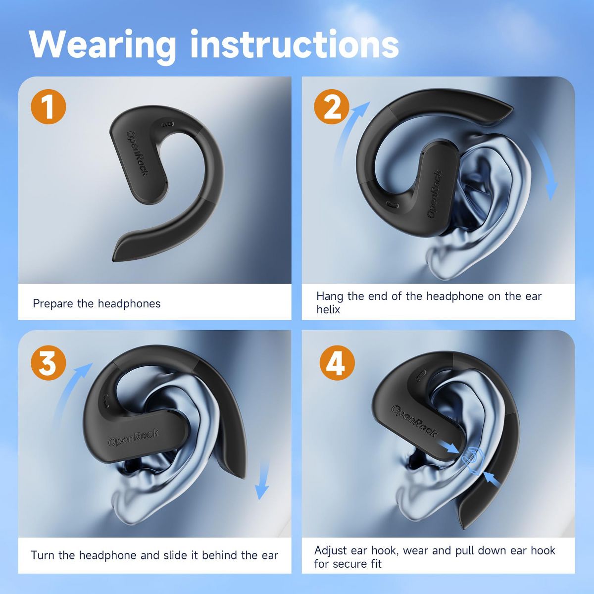 Sports and outdoor activity enthusiasts: Open-ear headphones have better breathability and sweat resistance, and can better adapt to outdoor sports such as running, cycling, and hiking. For music lovers who pursue natural sound quality and a wide sound field: OpenRock adopts a new generation of TubeBass bass enhancement technology to provide a feeling closer to live performance. People with small, sensitive ears and unhealthy ear canals: OpenRock is worn outside the ears through adjustable silicone ear hooks, which do not cause irritation or pressure on the ear canals, and can adapt to ears of different sizes. People who need to remain surrounding awareness: People who require listening alertness in the workplace and enjoy listening to audiobooks. People who need to wear headphones for long periods of time: Compared with in-ear earbuds, open-ear reduces ear pressure and discomfort.