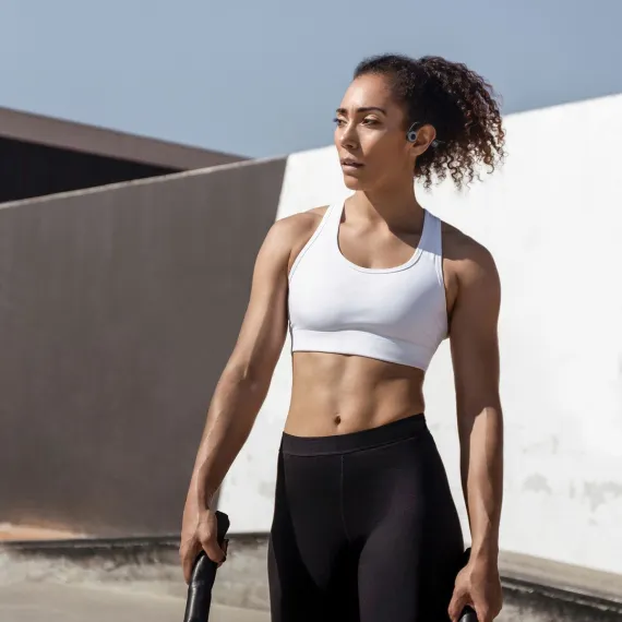 Dashlyte open-ear headphones from OPN Sound® are the ideal blend of premium sound and functionality. These bone-conduction headphones keep you aware of your surroundings while providing clear, high-quality audio. The built-in lights embedded into the neckband keep you safe and visible when running or exercising at night. And the Bluetooth® headphones’ comfortable, lightweight design and secure fit make them ideal for extended wear.