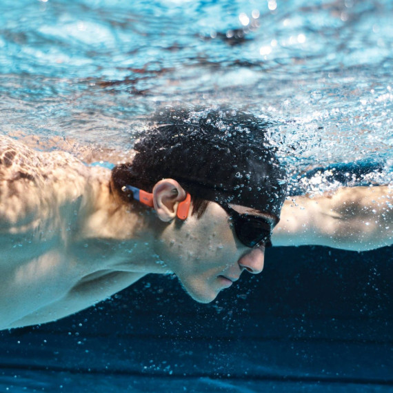 The all-new OpenSwim Pro features an IP68 waterproof rating, good for up to 2 meters for 2 hours. Dual waterproof mics and a triple-sealed design guarantee seamless transitions between water and land. No matter where your adventure takes you, switch effortlessly between Bluetooth and MP3 modes with intuitive buttons.