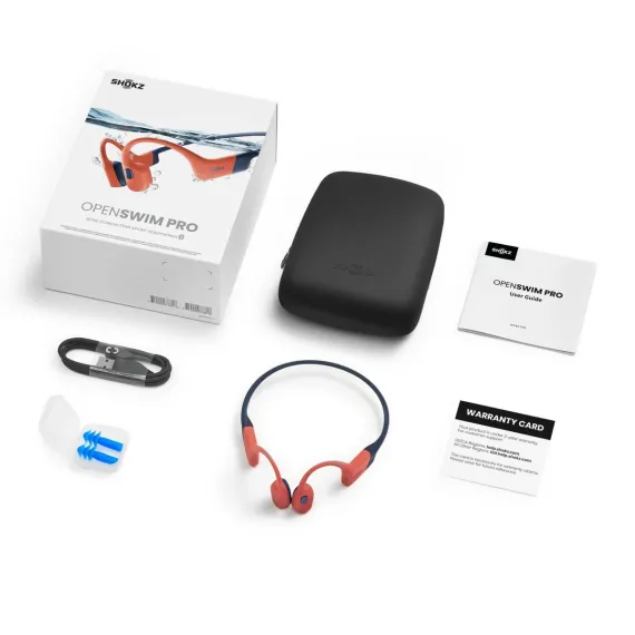 Shokz OpenSwim Pro Bluetooth Wireless Waterproof Headphones - Red: USB Open-Ear Design