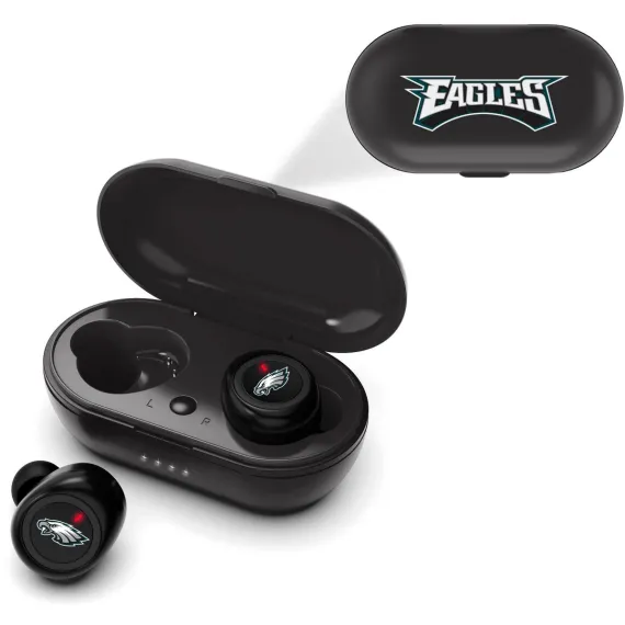 The SOAR True Wireless Earbuds are perfect for the sports lover in your life, offering premium stereo sound and the ability to support your team with an Officially Licensed NFL product. The built-in microphone makes taking calls on the go a breeze. These headphones automatically connect to all Bluetooth-enabled devices and maintain a 30-foot range. With the portable charging case, you can enjoy two full charges without worrying about losing power.