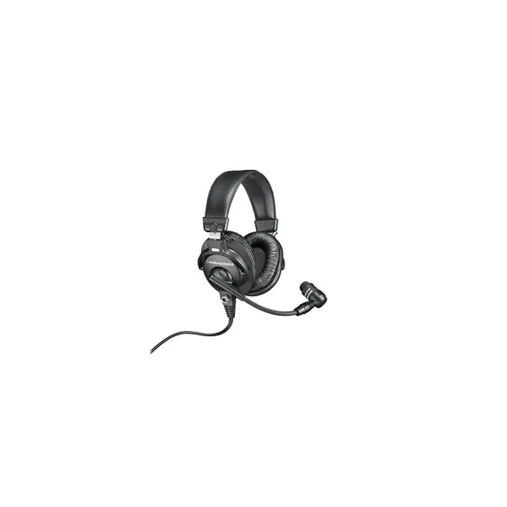Created especially for on-air news & sports broadcasting, announcing & interviews, this rugged stereo headset offers natural, highly intelligible and focused vocal reproduction, closed-back circumaural (around-the-ear) ear cups to seal out background noise, and a high-output dynamic microphone mounted on a flexible gooseneck boom. The headset’s microphone has a cardioid polar pattern tailored for pickup of speech with maximum voice intelligibility over a wide range of frequencies. It is more sensitive to sound originating directly in front of the element, making it useful in reducing pickup of unwanted sounds. The flexible gooseneck boom swivels for easy positioning on either the right or left side. Features: Microphone features polar pattern and frequency response tailored for natural, highly intelligible vocal reproduction Closed-back circumaural ear cups help seal out crowd noise and other background distractions Neodymium magnets in microphone and headphones for high output level & detailed sound reproduction Cardioid pickup pattern of the dynamic microphone rejects off-axis sounds Boom-mounted microphone can be positioned on the left or right side Adjustable cushioned headband and lightweight design for long-wearing comfort Rugged design with user-replaceable cable and ear pads Detachable cable (BPCB1) terminates in 3-pin XLRM-type connector for microphone and ¼” 3-conductor for headphone Specifications.