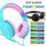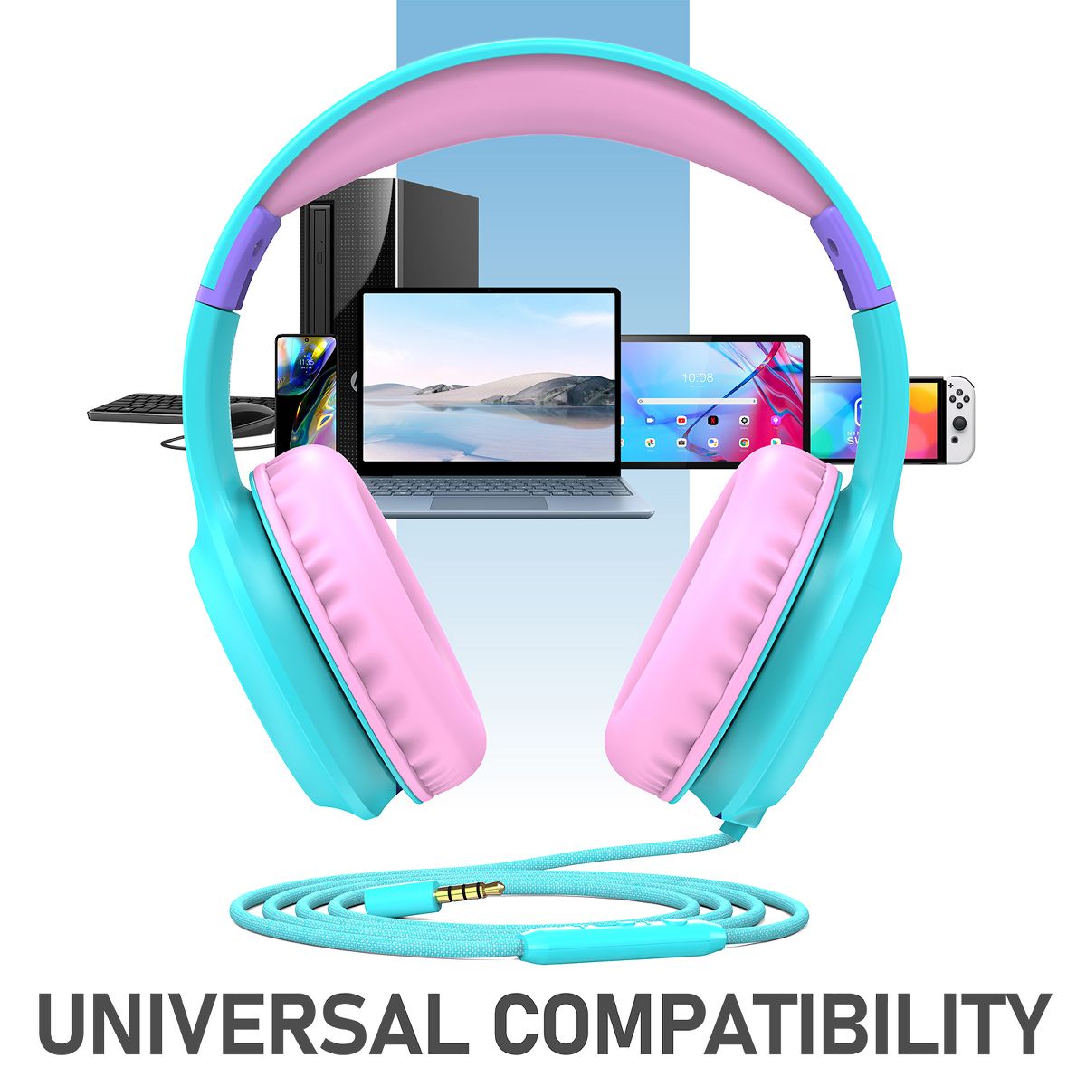 FosPower Kids Headphones Wired Microphone, Over Ear Headphones for Kids with Cord, Kids Headset with 3.5mm Jack For School Chromebook iPad, Mint/Pink