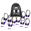 HamiltonBuhl® Sack-O-Phones, 10 Personal Headphones in a Carry Bag, Purple