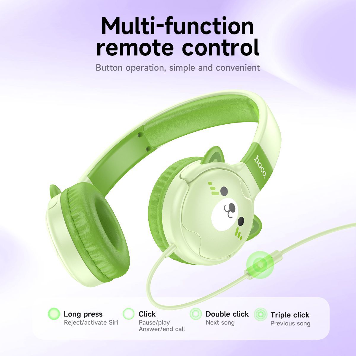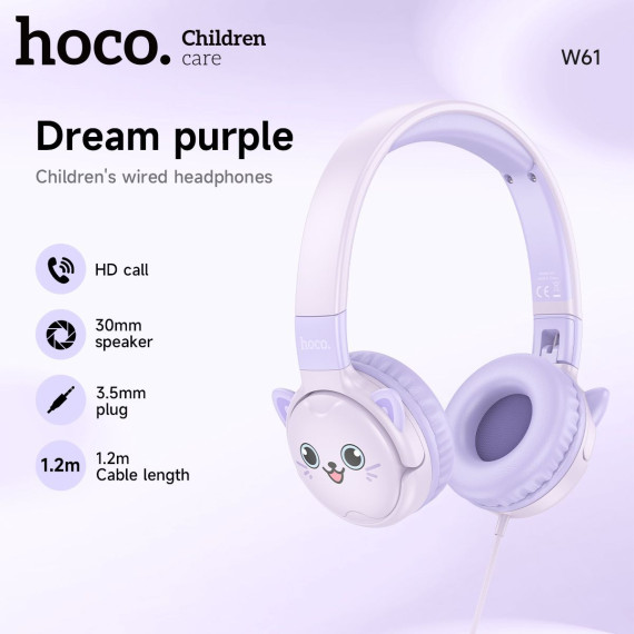 hoco. Kids Wired Headphones, Purple