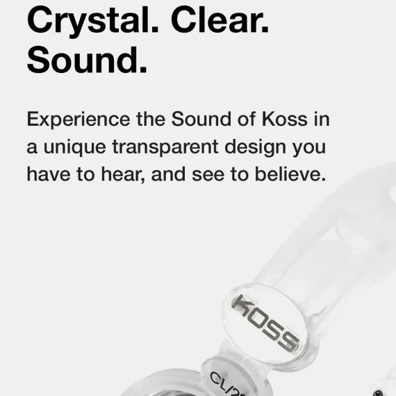 The Koss® CL20 Over-the-Ear Wired Headphones feature a unique, clear transparent design with soft leatherette cushion. It delivers a balanced sound signature with deep bass, crisp highs, and a full midrange from 30 Hz to 20 kHz, making them ideal for enjoying high-fidelity music, movies, and games. Connect to computers, tablets, and music players with the standard 3.5-mm headphone Jack plug.