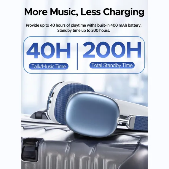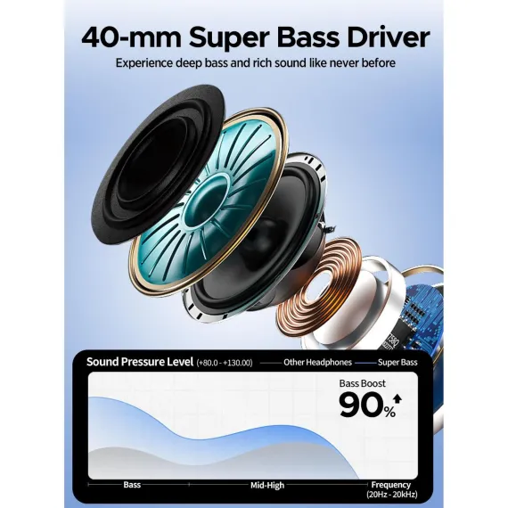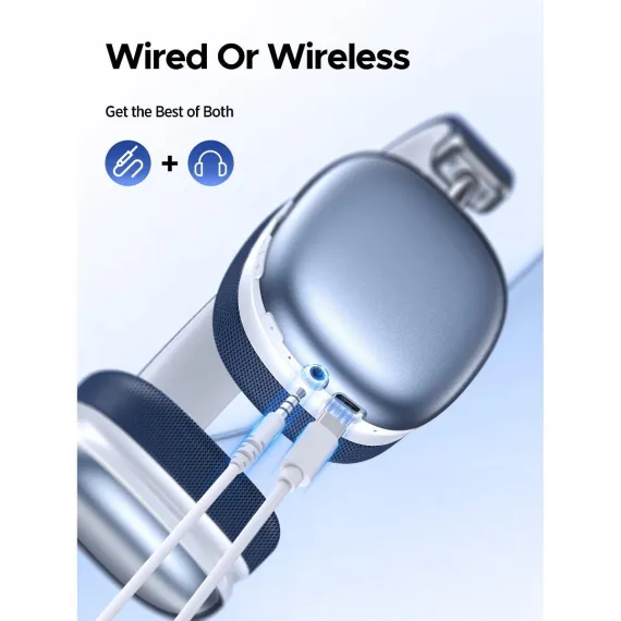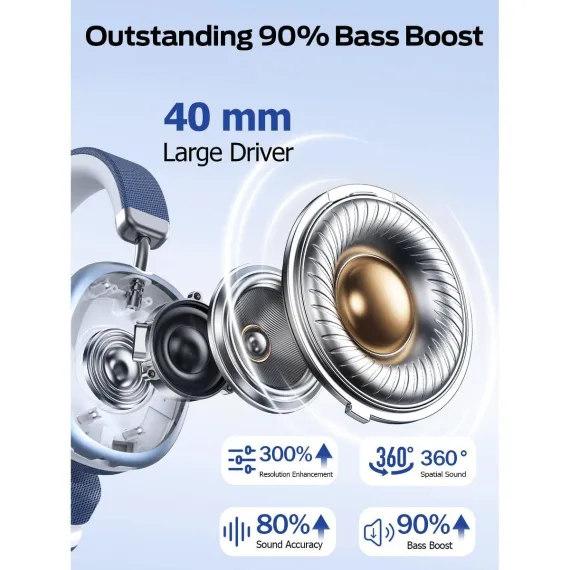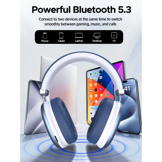 SY-BT1632 Blue Over-Ear Bluetooth Headphones: 40mm Bass Driver, Bluetooth 5.3 Dual-Mode, 40hr Battery, Comfort Fit