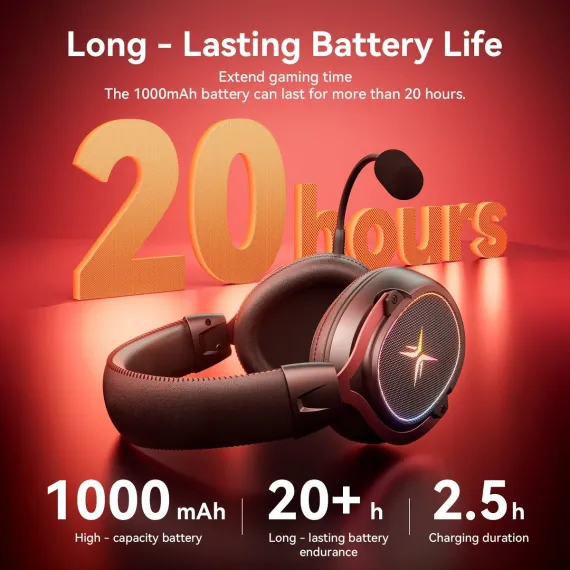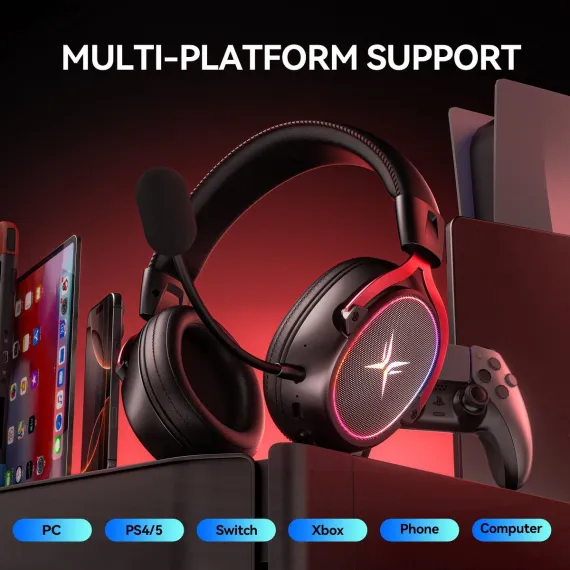 TAGRY K3 2.4GHz Wireless Gaming Headsets 7.1 Surround Sound Bluetooth Headphones 70H Playtime ENC Noise Cancelling Over Ear Game Headphone with Mic