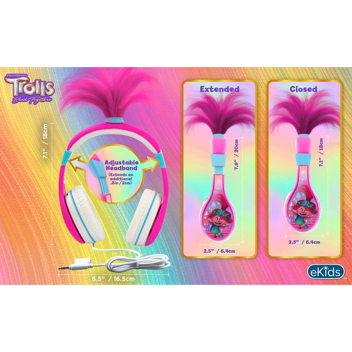 Trolls Headphones look as great as they sound! Connect to any audio device with a 3.5mm jack, including tablets, smartphones, and computers, and enjoy hours of stereo sound in any setting. Adjustable headband and pivoting ear cushions provide a custom, comfortable fit when using headphones for school, travel, or homework. Plus, it includes a share-port headphone splitter, making it easy to share your music and movie experiences with friends and family. Makes a great gift for any fan of the new film, Trolls Band Together!