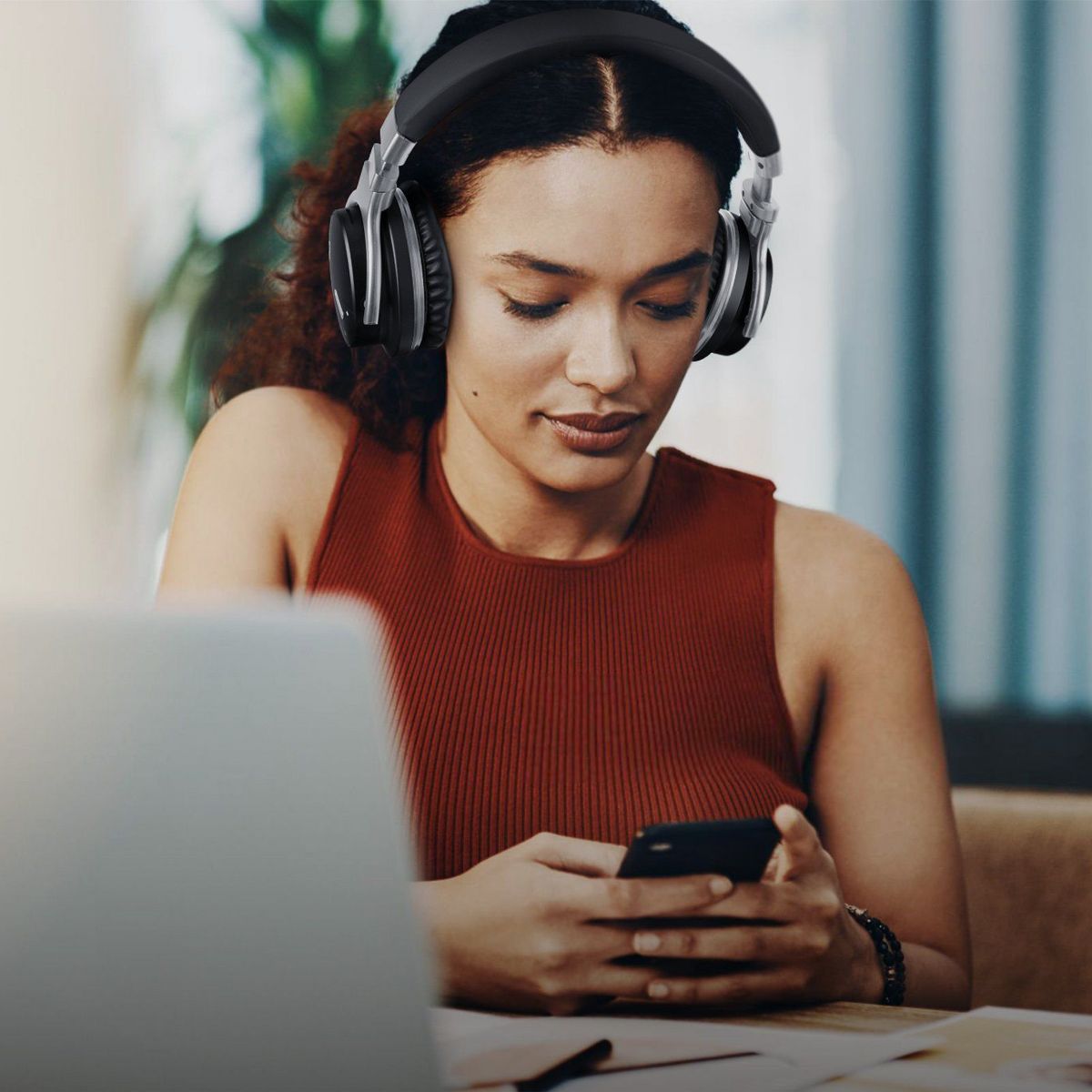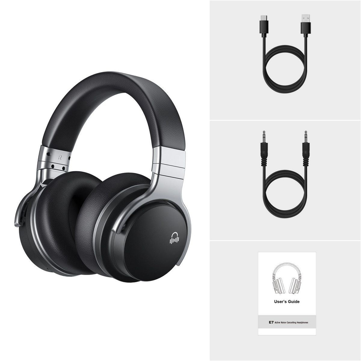MOVSSOU E7 Active Noise Cancelling Bluetooth Wireless Headphones Over Ear Black