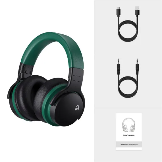 MOVSSOU E7 Active Noise Cancelling Bluetooth Wireless Headphones Over Ear Black