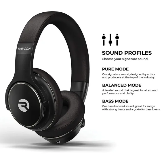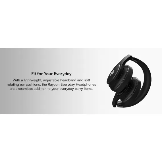 Raycon® Everyday Headphones Bluetooth® with Mics and Aux Input, ANC and Hi-Res Audio, up to 50 Hours Play Time, IPX4 Water-Resistant (Carbon Black)