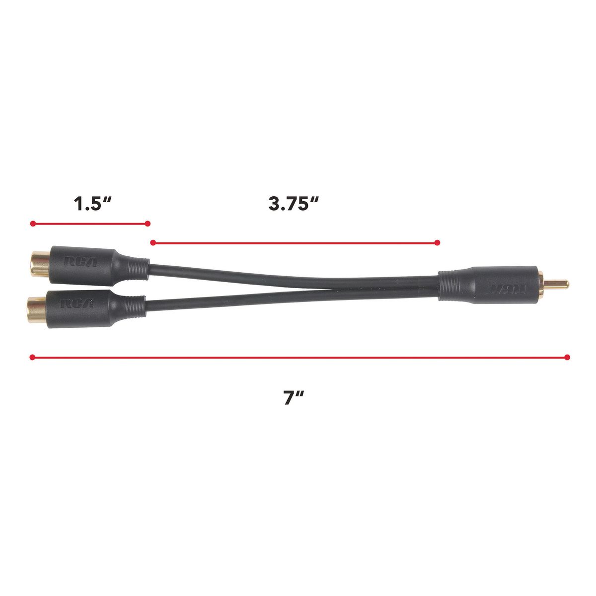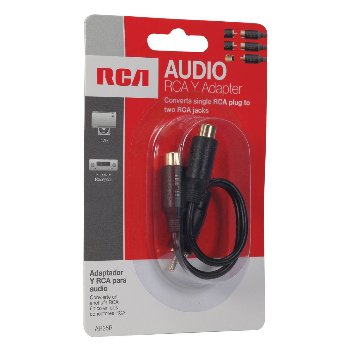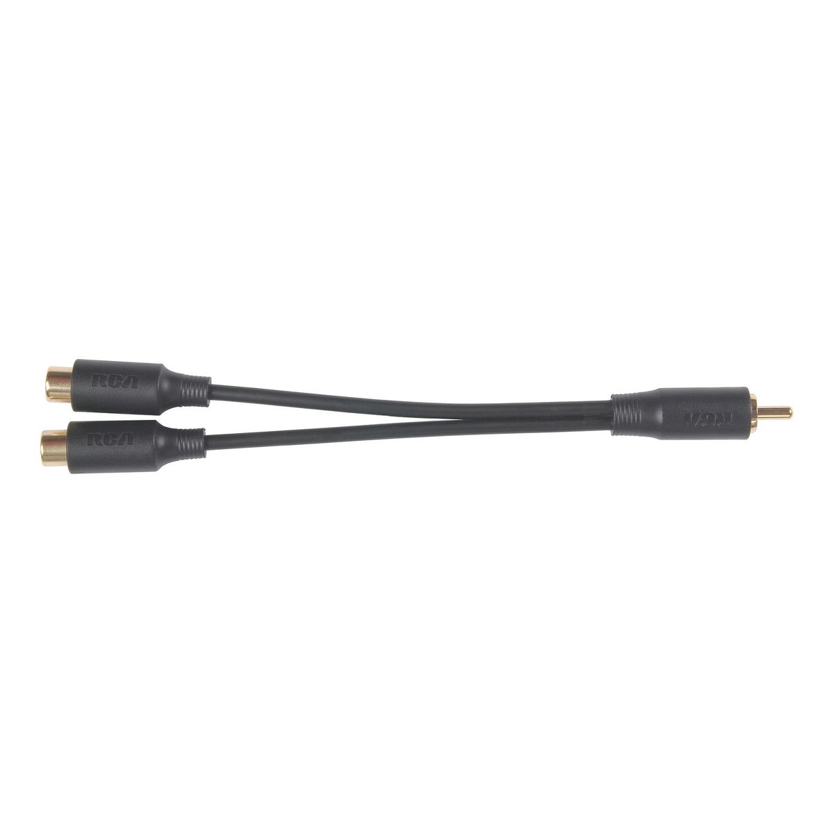 Convert a single RCA-type female jack to 2 separate RCA-type female jacks with this convenient AH25R 3-in. Y-adapter from RCA. The adapter has a single RCA-type male plug on 1 end and 2 RCA-type female jacks on the other. It can be used to provide dual mono connections from a single output.