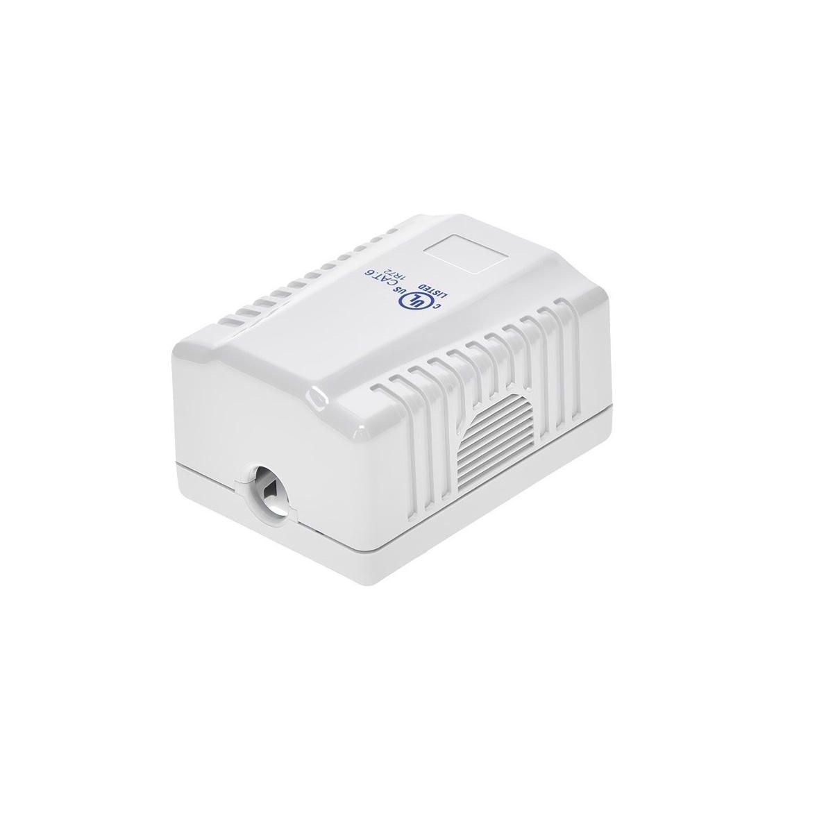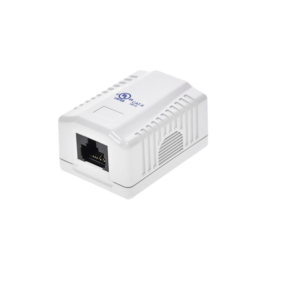 Surface mount cat 6 box for when in-wall box and wire installation are not possible. A clean and simple solution for network expansion. Box is durable platic, white in color. Comes with double sided adhesive tape to mount the box to the wall, or you can use the two screws provided to screw it down to baseboard, window sill, trim, etc. Jack is included.