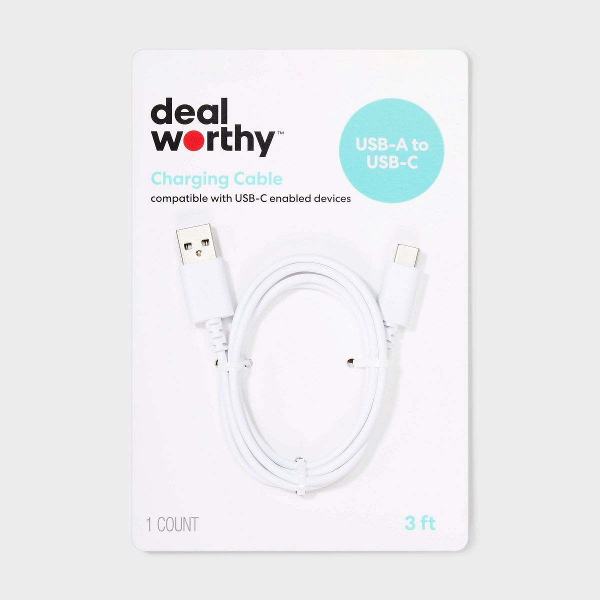 3' USB-A to USB-C Cable - dealworthy™ White