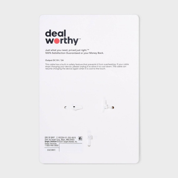 Enjoy seamless connectivity using the 3' USB-A to USB-C Cable from dealworthy™ in White. This 3-foot cord connects USB-A to USB-C devices, providing a reliable solution for charging and data transfer. Ideal for a variety of gadgets, this cord offers convenient length for everyday use.
