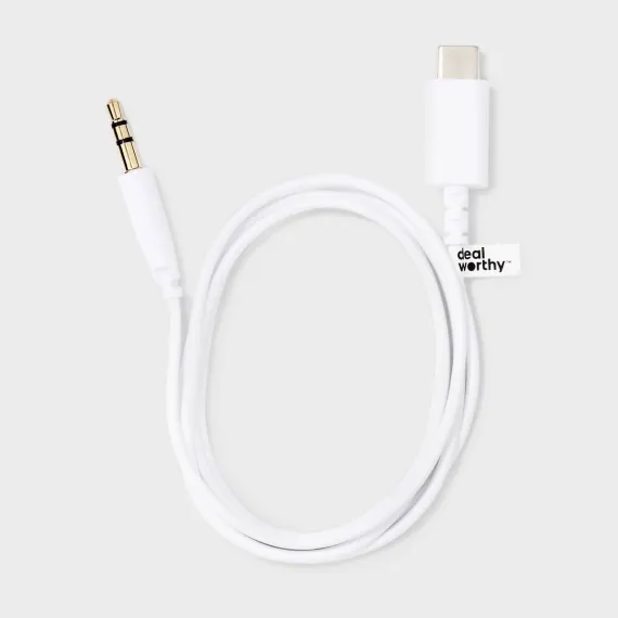 Experience clear sound using the 3' USB-C to AUX Cable from dealworthy™ in White. Easily connect your USB-C devices to any 3.5mm AUX input with this 3-foot cord in classic white. Enjoy quality audio with seamless compatibility, whether it’s for your car stereo or home speakers. Ideal for on-the-go listening, it offers a convenient 3.5mm jack to USB-C connection to expand your options.