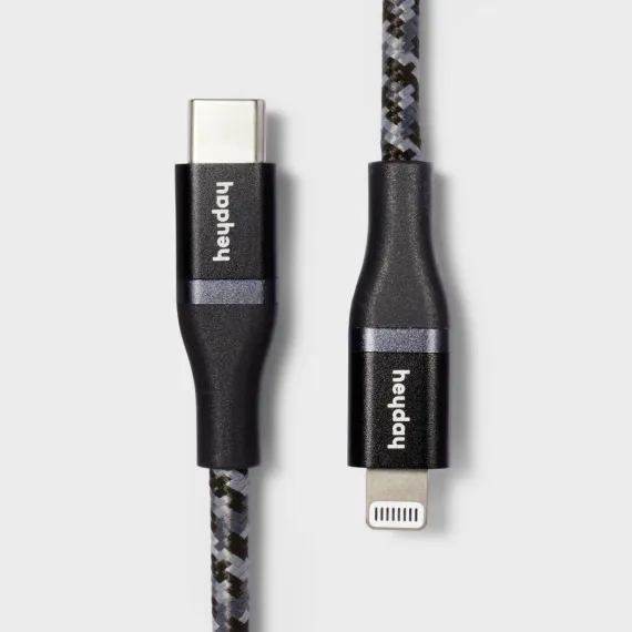 4' Lightning to USB-C Braided Cable - heyday™ Black: Male-to-Male Connector