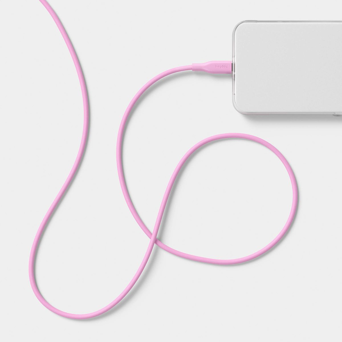 The 4ft USB-C to Lightning Silicone Cable from heyday™ in Bright Lilac Purple offers a reliable connection for your devices. This male-to-male cable is compatible with Apple iPhone and select iPads, ensuring broad usability. The 4-foot length provides flexibility for charging and data transfer, while the silicone material enhances durability and tangle resistance.