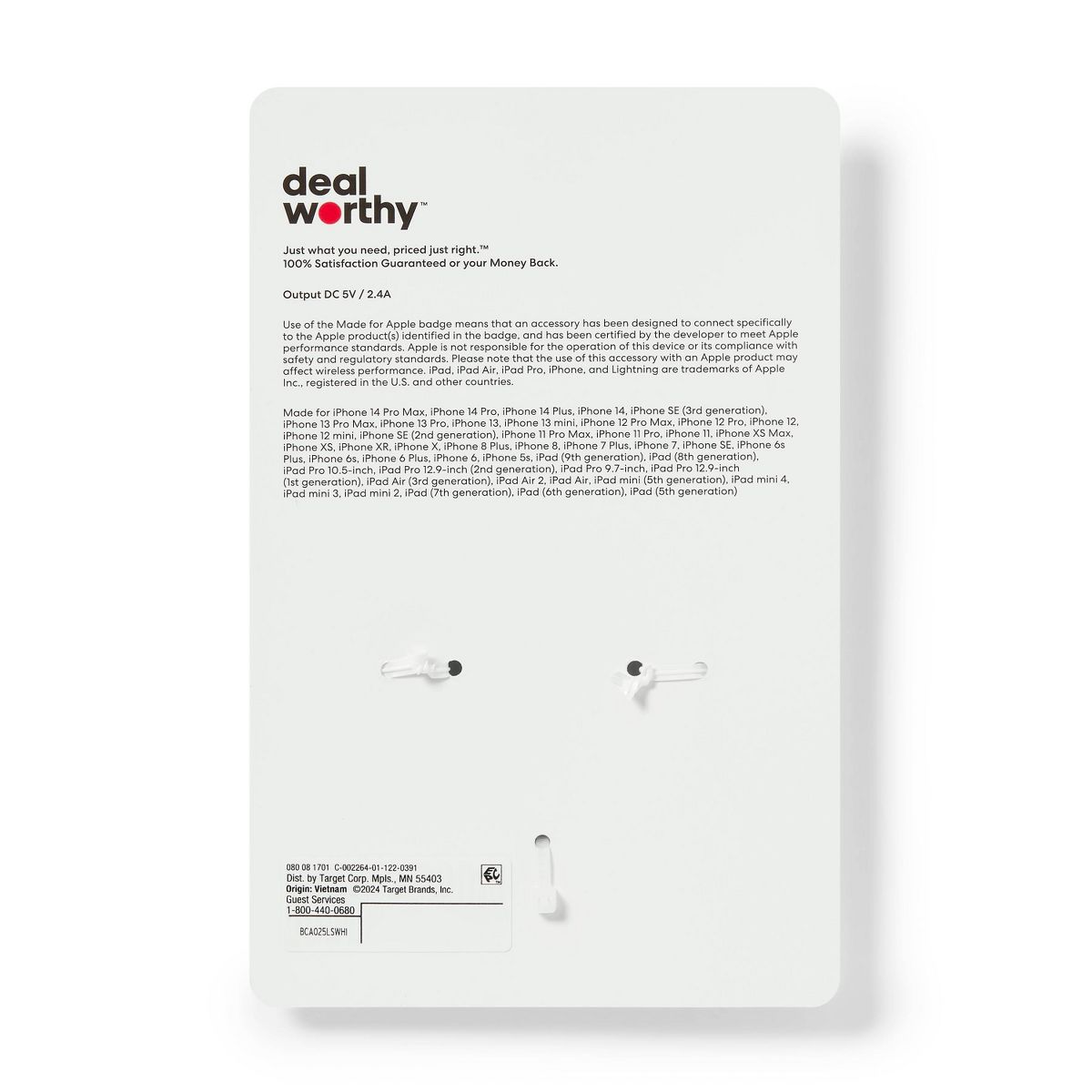 5' Lightning to USB-A Charging Cable - dealworthy™ White: Apple Connector