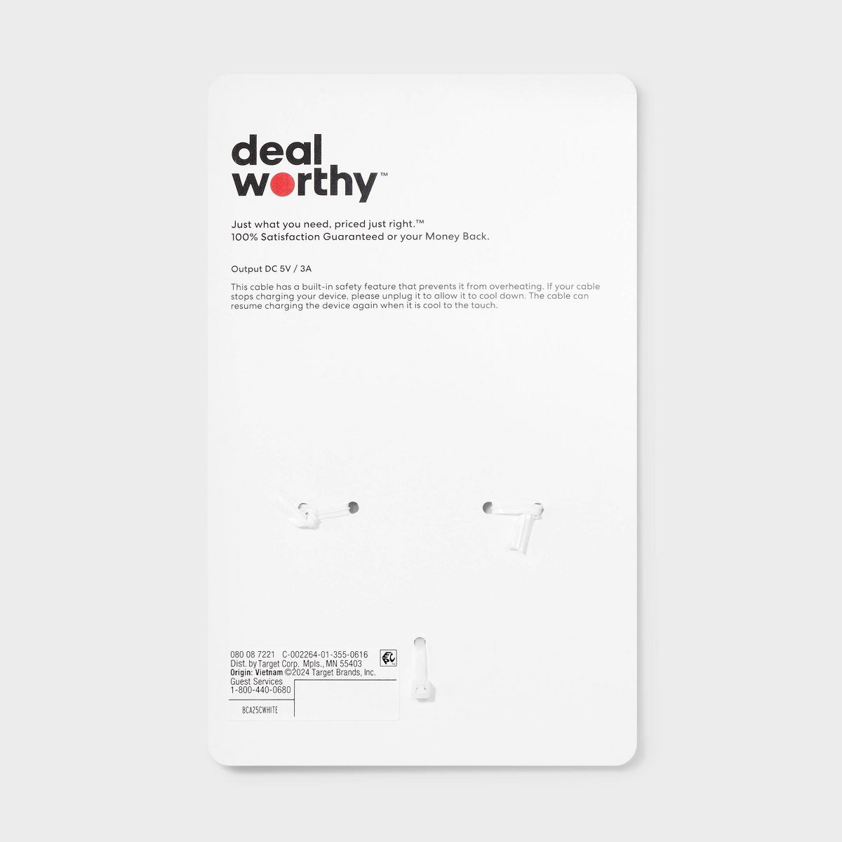 5' USB-A to USB-C Cable - dealworthy™ White: Male-to-Male Connection, 5ft Length