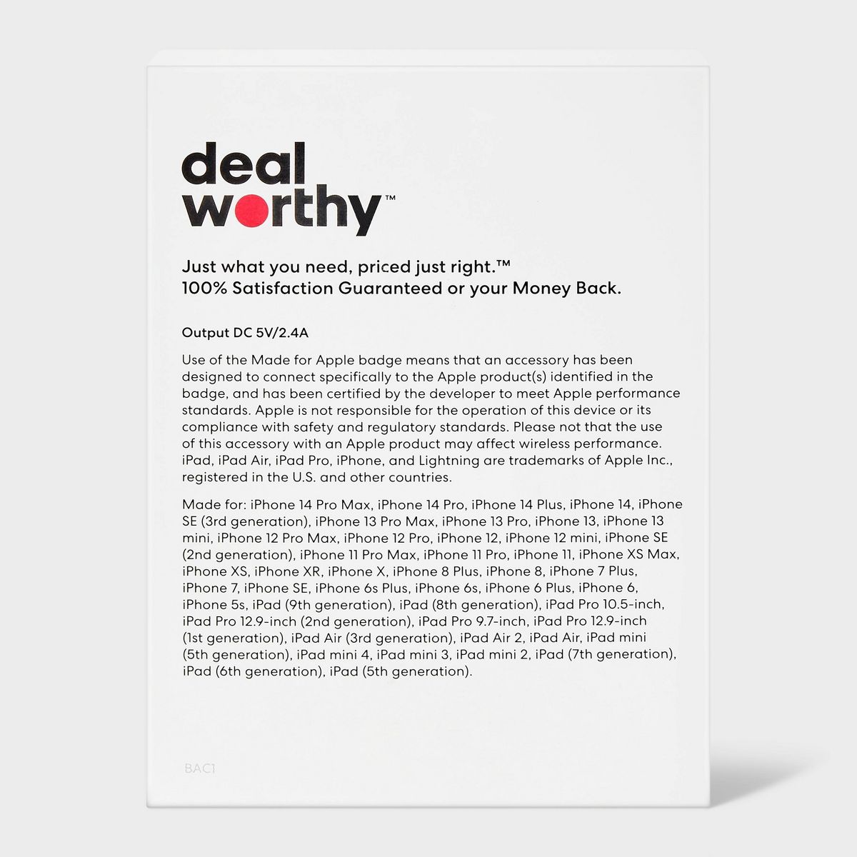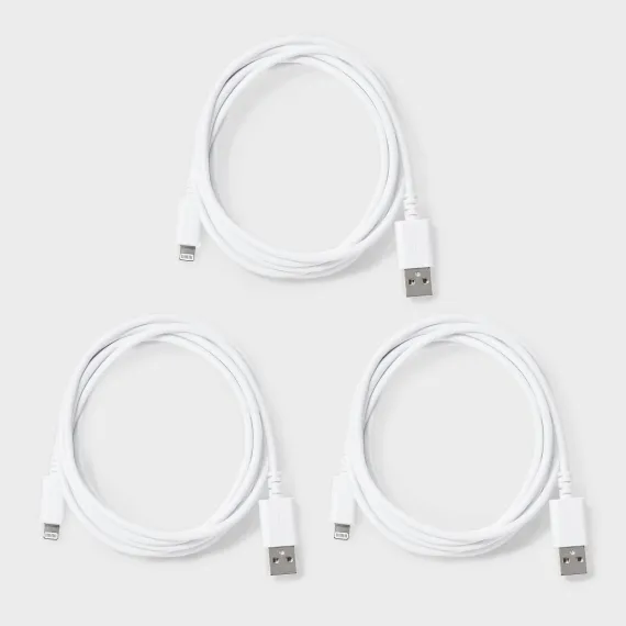 Stay powered up with the 6' Lightning to USB-A Charging Cables 3pk from dealworthy™ in White. The pack includes three 6-foot cords on-the-go charging and everyday use. Whether you're at home, work or traveling, these durable cords ensure fast and reliable charging for your Apple devices.