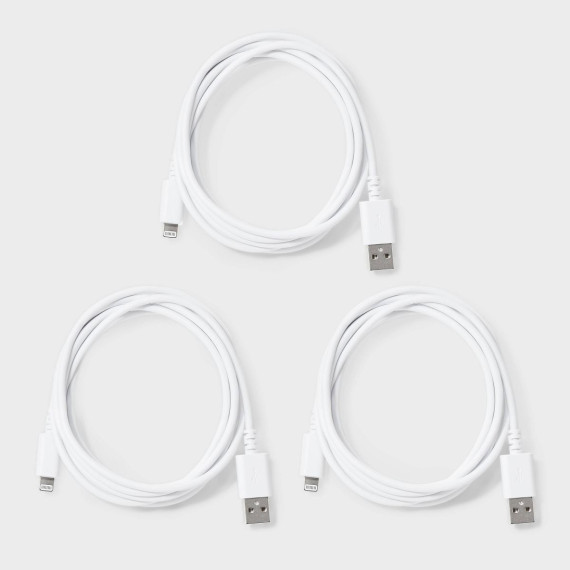 6' Lightning to USB-A Charging Cables 3pk - dealworthy™ White: Male-to-Male Connector