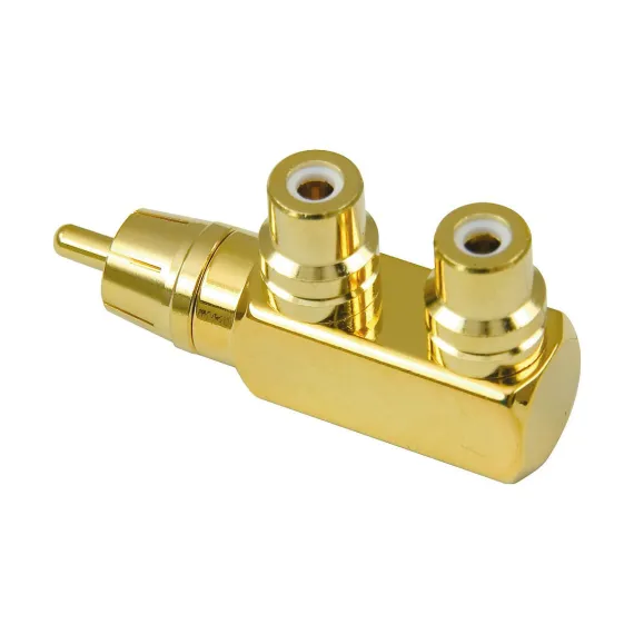 American Recorder Technologies RCA Male to 2 RCA Female Right Angle Adapter Gold