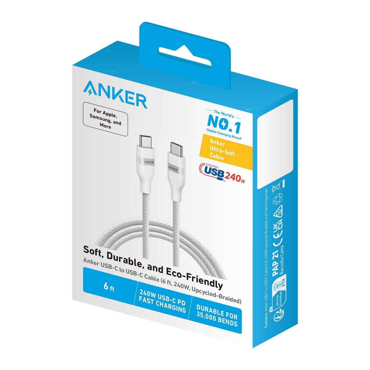 Anker 6' 240W USB-C to USB-C Cable - White