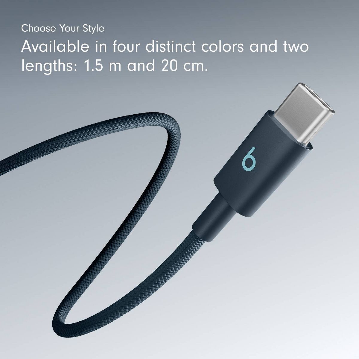 The Beats 1.5-meter (5-foot*) USB-C to USB-C charging cable is made with a tangle-free woven design for extra durability and convenience.