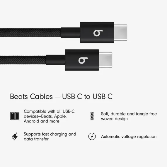 This package includes two 1.5-meter (5-foot*) Beats USB-C to USB-C woven charging cables.
