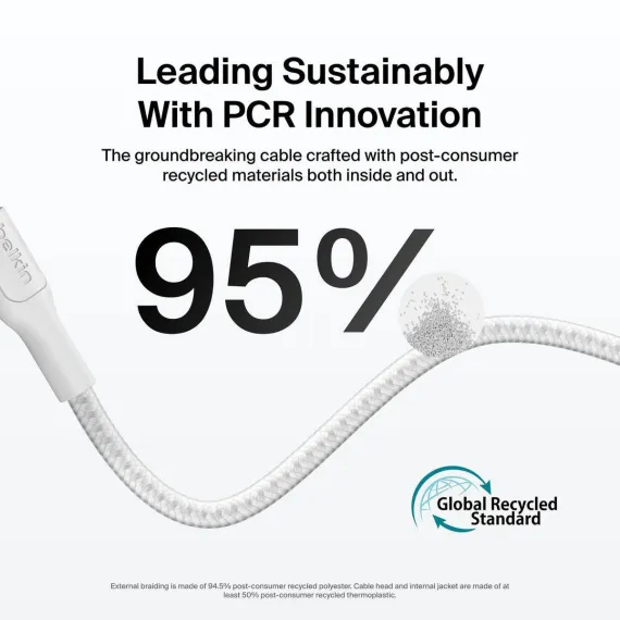 The BOOST↑CHARGE Pro USB-C to Lightning charging cable combines sustainability and performance, powering your iPhone 16 from 0-50% in 45 mins. Perfect for when you need a quick boost at home or on-the-go. Durable and sustainable, it withstands 30K+ bends and 10K+ plugs, and is compatible with iPhone 14 older for a greener future.