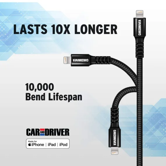 - FROM ZERO TO SIXTY CHARGE AND SYNC: Get to the finish line faster with Car and Driver's cables. Apple MFI-certified lightning cables with superior Speed.