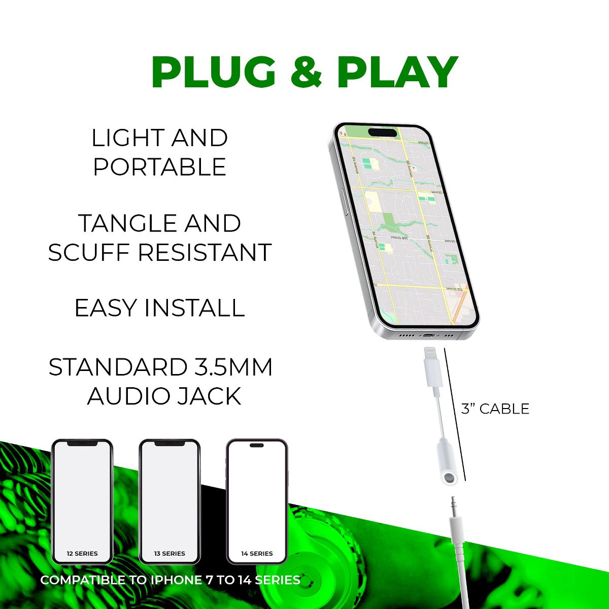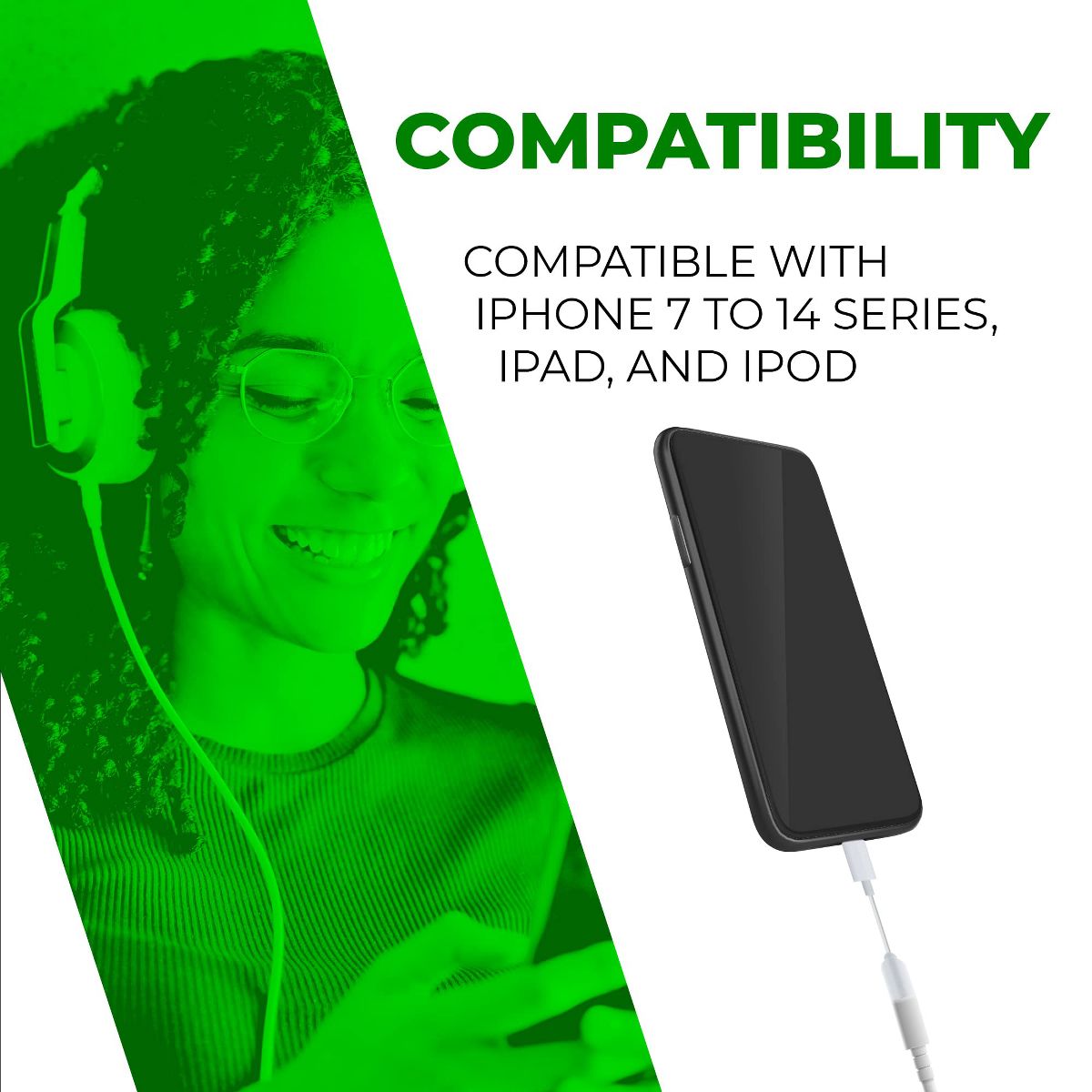 Introducing our Plug-and-Play Lightning Adapter, the ultimate solution for all your audio needs. The Chargeworx Lightning Headphone Adapter creates a 3.5mm auxiliary input on your lightning-equipped devices, allowing you to enjoy your music without any compromise in sound quality or latency. Have a favorite pair of non-Bluetooth headphones you can't use on your latest iPhone? We have you covered. The Chargeworx Lightning Adapter is compatible with iPhone 7 and newer models, and iPad 4th Generation and beyond, ensuring you can keep your favorite headphones timeless and relevant. Our adapter is not only durable but also compact, measuring just 3 inches in length, which means no more tangled cords and easy on-the-go connectivity. Stay connected with Chargeworx. [Compatible with iPhone 14/14 Pro/14 Max/14 Pro Max/ iPhone 13/13 Pro/13 Pro Max/13 Mini/ iPhone 12/12 Pro/12 Pro Max/12 Mini/ iPhone 11/11 Pro/11Pro Max/ iPhone XS/XS Max/11 Pro Max/ iPhone XR/X iPhone 8 and 8 Plus/ iPhone 7 and 7 Plus. iPads 4th Generation and later.]