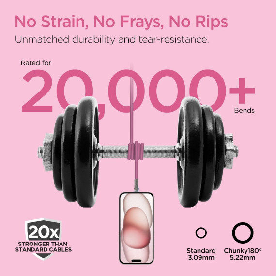 • 20X Stronger Than Standard Cables – Rated for 20,000+ Bends