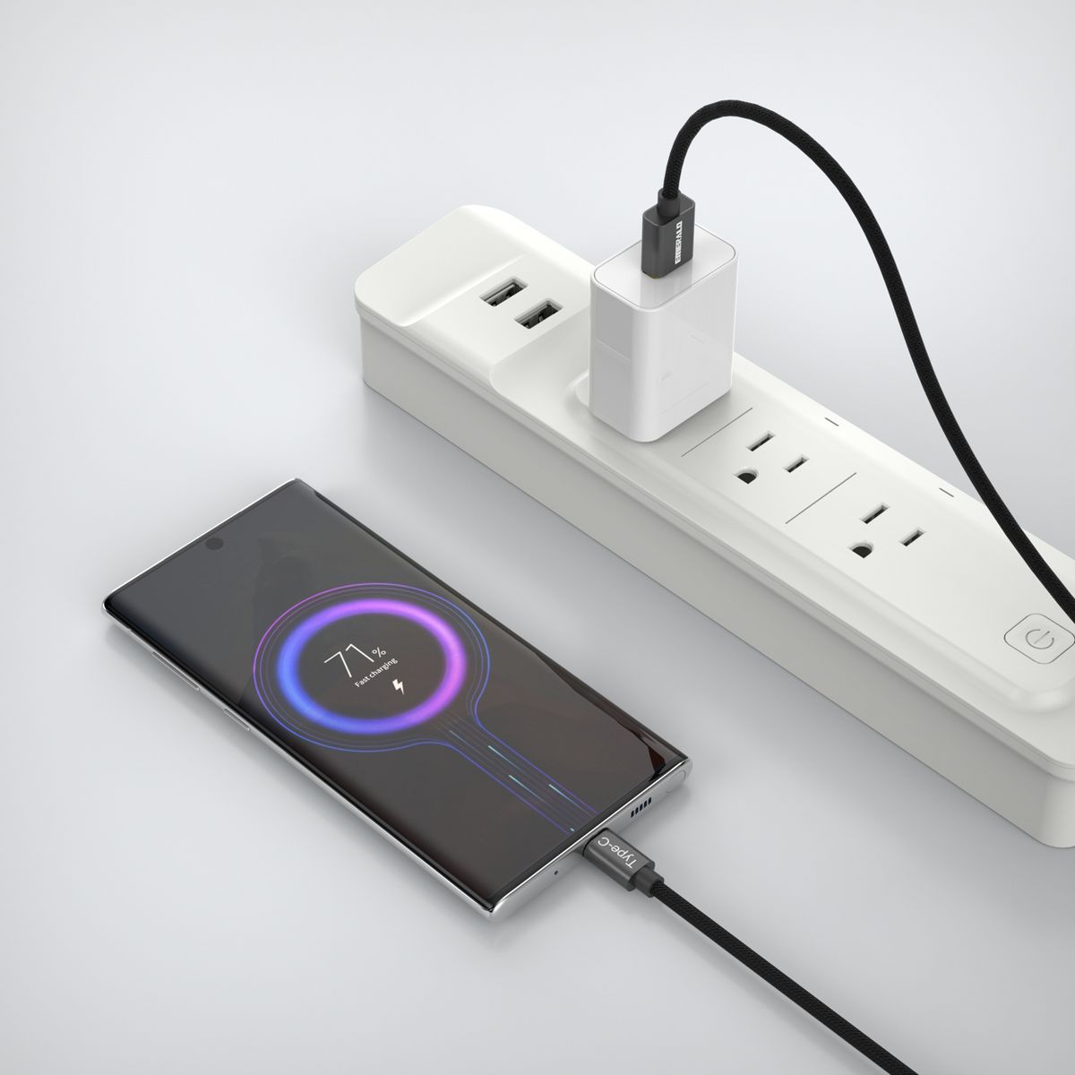 Designed for both fast charging and data syncing, the high bandwidth connection ensures stable performance across all your Type-C devices. The strong braided design resists wear, tangling, and daily use, while the color matching velcro tie keeps your cord neatly coiled and organized.
