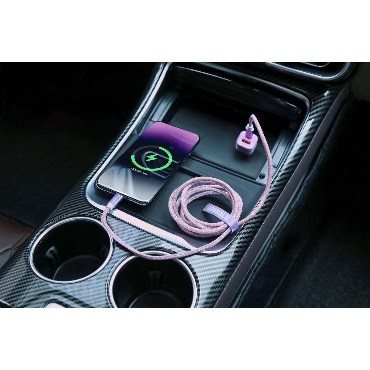 Emerald 2 Port Car Adapter + 6FT Lightning Cable - Black Charger for iPhone