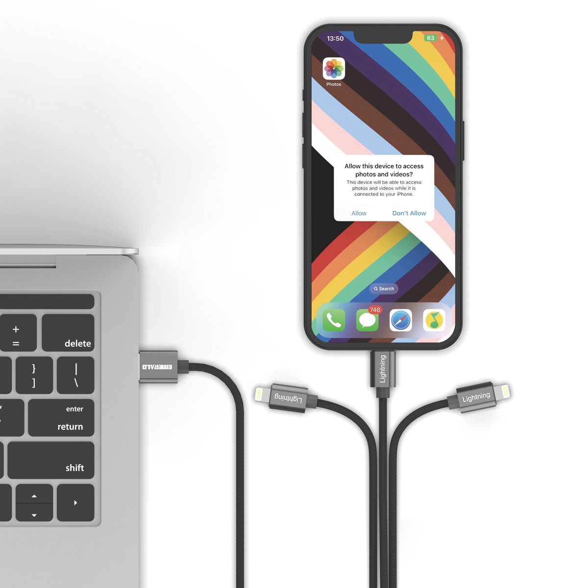 Emerald 6ft 3-in-1 Braided USB-A to Triple Lightning, Charging & Data Syncing Cable - Black