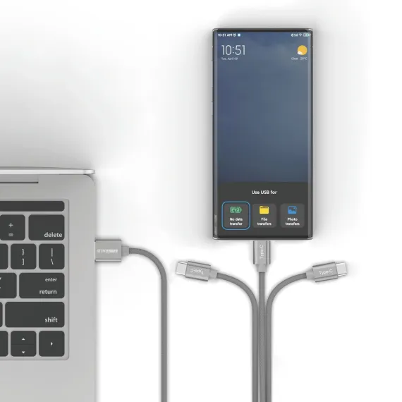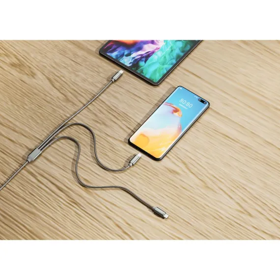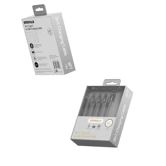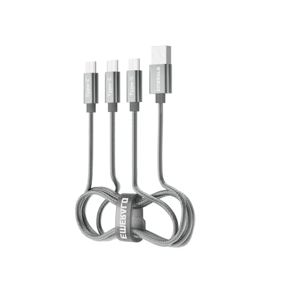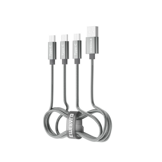Emerald 6ft 3-in-1 Braided USB-A to Triple USB-C (Type-C), Charging & Data Syncing Cable - Grey