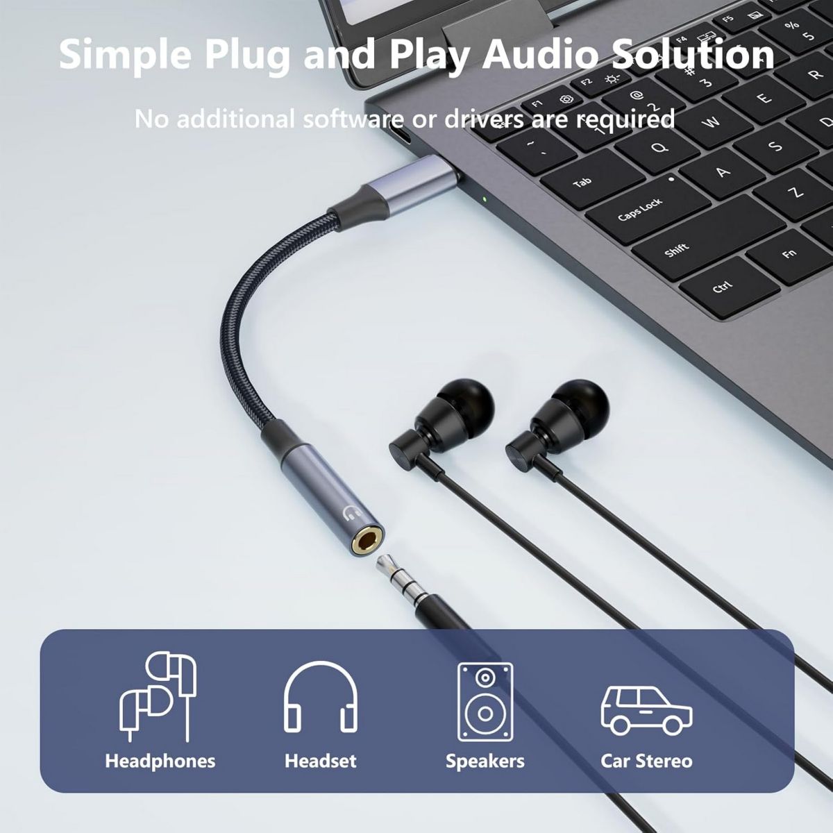 This USB C to 3.5mm adapter allows wired earphone use with Type - C devices without Bluetooth, offers easy stable plug - and - play connection, is compatible with most Type - C gadgets, enables seamless audio transmission, and has a compact portable design for on - the - go use.
