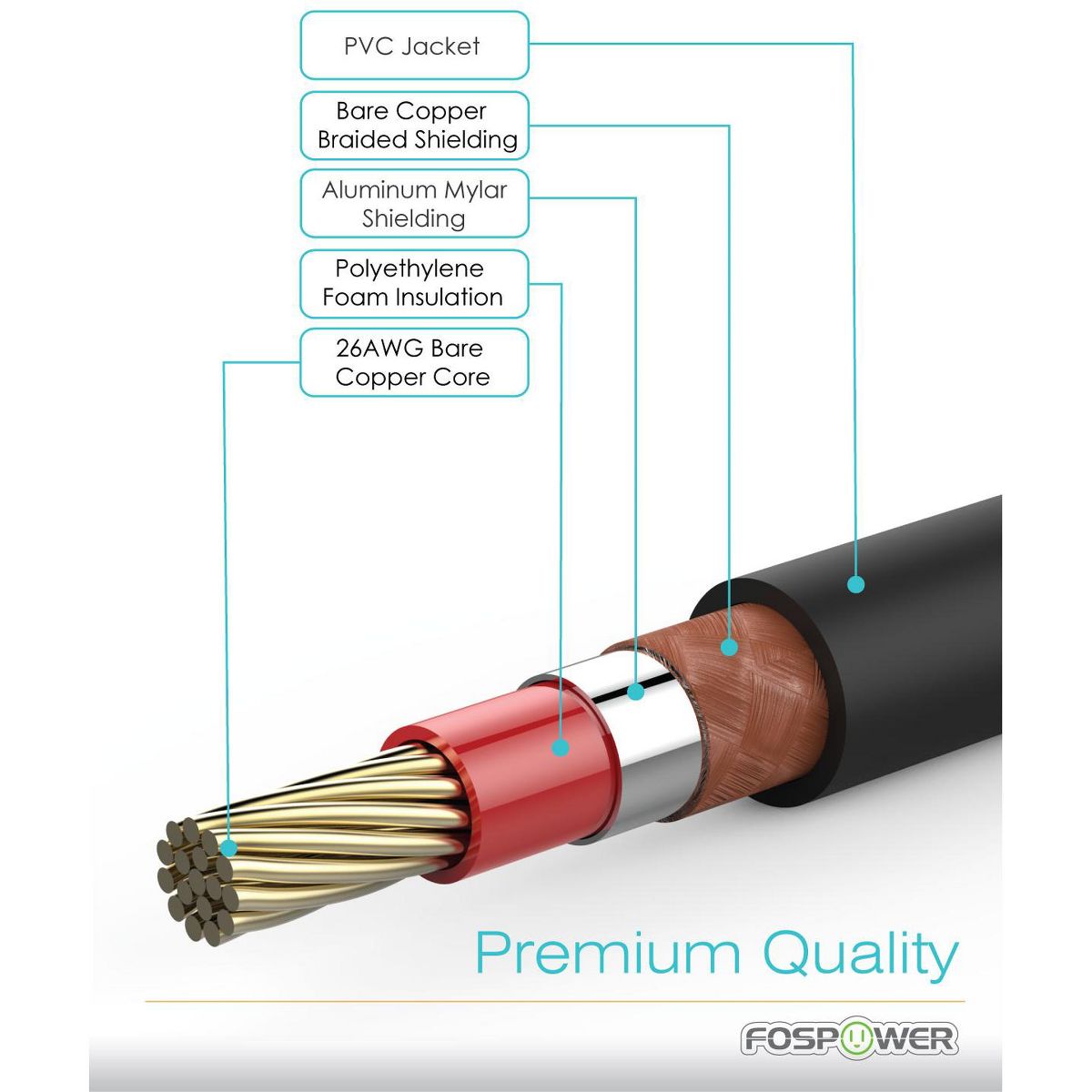 The core of the FosPower digital coaxial audio cables are covered with polyethylene foam (PF) dielectric insulation, which greatly minimizes signal loss.
