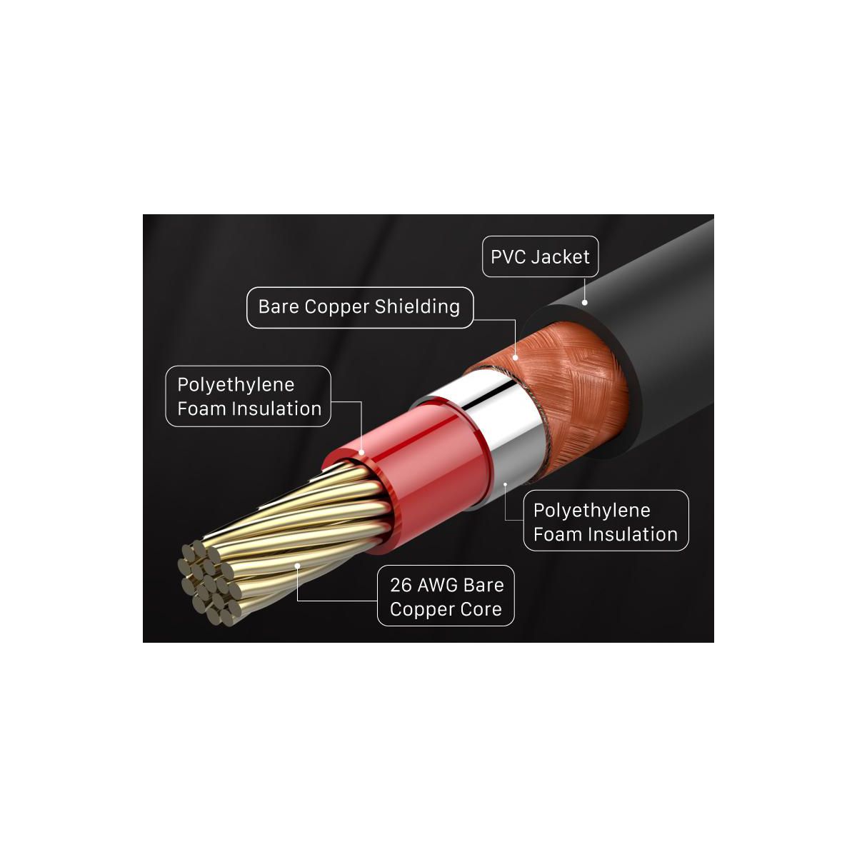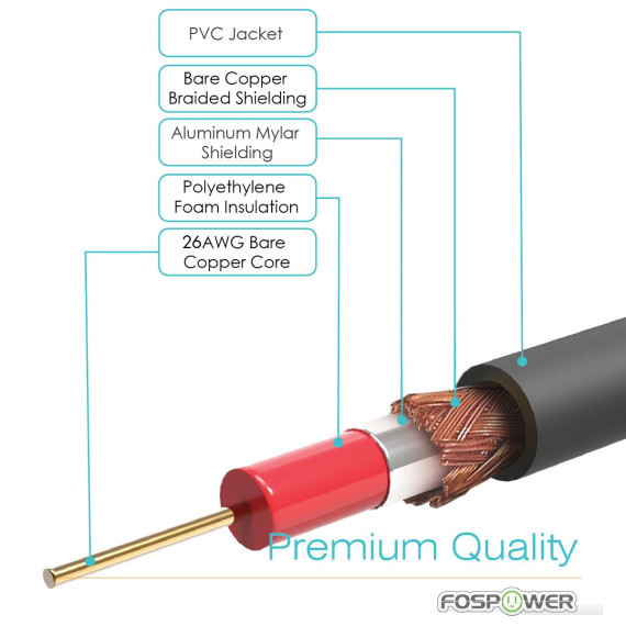 The core of the FosPower digital coaxial audio cables are covered with polyethylene foam (PF) dielectric insulation, which greatly minimizes signal loss.