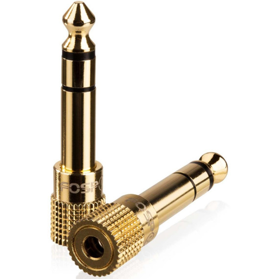 This premium stereo headphone adapter will allow you to connect your favorite pair of headphones and other stereo devices with pro audio and home audio equipment. It will convert a 3.5mm (1/8") female plug into a 6.35mm (1/4") male plug. It allows plugging a 3.5mm (1/8") stereo male audio plug into a 6.35mm (1/4") stereo female jack.