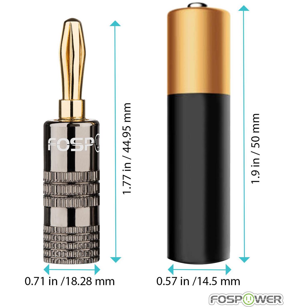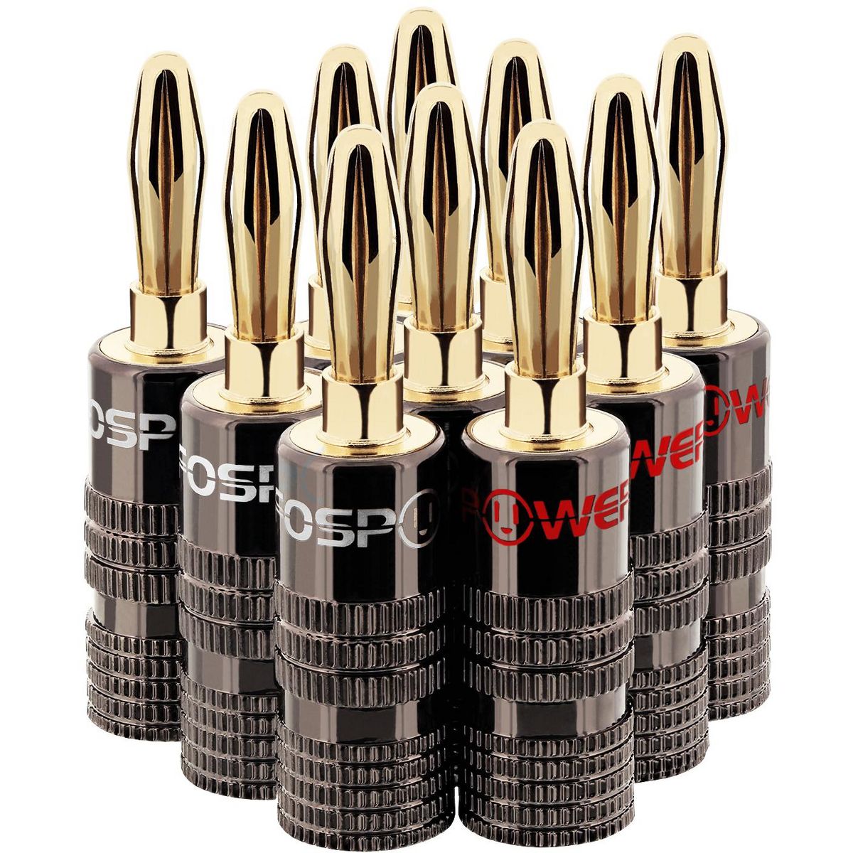 FosPower's banana plugs make speaker installation simple. They are designed for use with speakers, A/V receivers, amplifiers, surround sound systems and banana wall plates that use banana style binding posts. Banana plugs make it easy to connect speaker wire to your amplifiers/receivers and speakers.