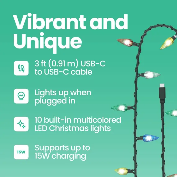 The GEMS Christmas Light Up Cable brings a little holiday cheer to your everyday charging routine. This 3-foot USB-C to USB-C cable is lined with ten colorful LED Christmas lights that glow when you plug it in, making it as festive as it is practical. It supports fast charging up to 60W, so you can juice up your favorite devices quickly. Whether you’re decorating your desk or looking for a fun stocking stuffer, the GEMS Christmas Light Up Cable makes charging feel merry and bright.
