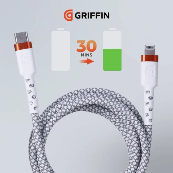 GRIFFIN Lightning to USB-C Cable, Braided Fast Charging with Reinforced Aluminum Connectors, Designed for Long-Term Performance and Reliability